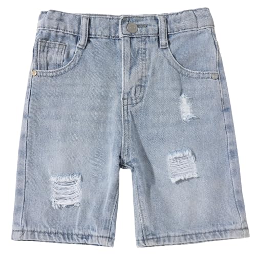 Happy Cherry shorts för pojkar, korta jeans med knappar, snygga arbetsshorts för pojkar med fickor, mjuka, bekväma sommarcargoshorts 3–9 år, Ljusblå, 5-6 år