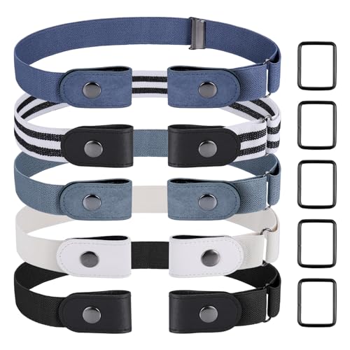 5 st bälten utan spänne för kvinnor män, justerbart elastiskt osynligt bälte, snygga dambälten för jeans, bekvämt spännlöst mjukt stretchbälte för vuxna barn, 5 färger, Vit, svart, mörkblå, ljusblå