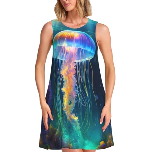 GFXEDSAH Manet ocean tryck ärmlösa klänningar, snygga sommarklänningar, för strandsemester och vardagskläder, Svart, S