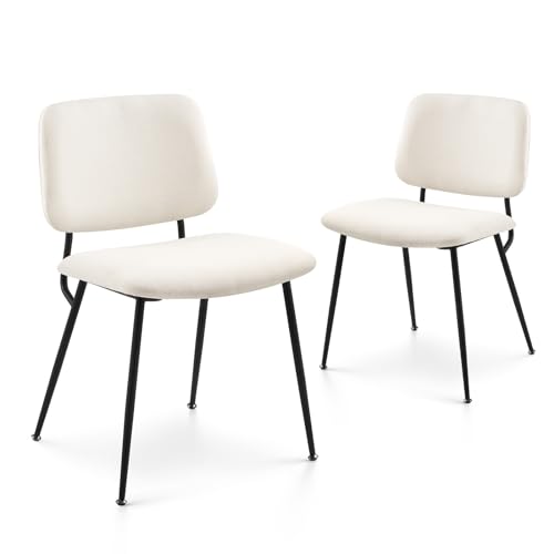 COLAMY Modern klädsel-matrumsstolsats med 2, tygmatrumsstolar accentmatstol snygga köksstolar med solida metallben och böjd rygg, kräm