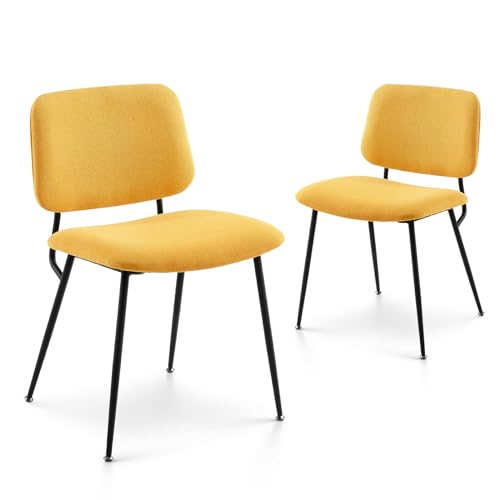 COLAMY Modern klädsel-matrumsstol-set med 2, tygmatrumsstolar accentmatstol snygga köksstolar med solida metallben och böjd rygg, gul
