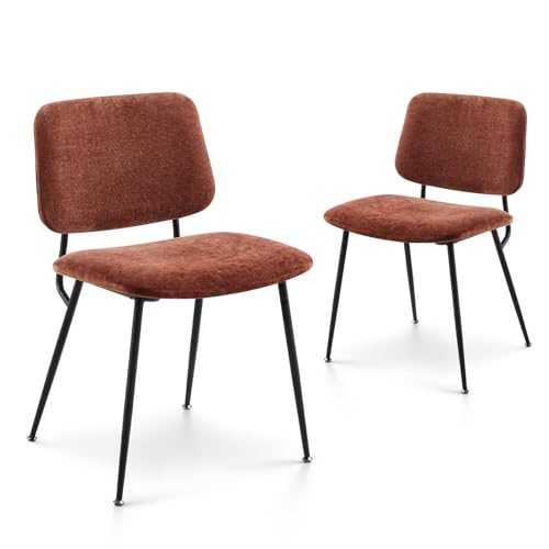 COLAMY Modern klädsel-matrumsstol-set med 2, tygmatrumsstolar accentmatstol snygga köksstolar med solida metallben och böjd rygg, orange