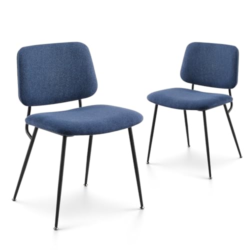 COLAMY Moderna klädsel-matrumsstolar set med 2, tygmatrumsstolar accentmatstol snygga köksstolar med solida metallben och böjd rygg, blå
