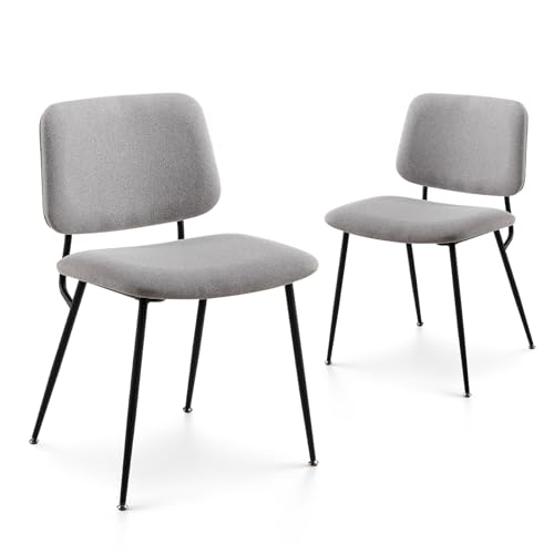 COLAMY Moderna klädsel-matrumsstolar, set med 2, tygmatrumsstolar, accentmatstol, snygga köksstolar med solida metallben och böjd rygg, grå