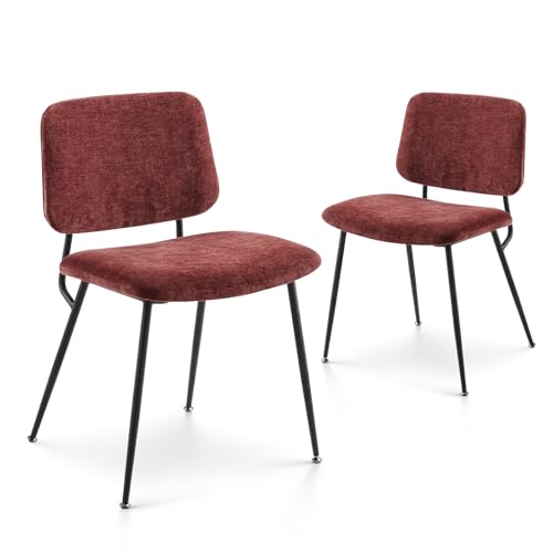 COLAMY Moderna klädsel-matrumsstolar set med 2, tygmatrumsstolar accentmatstol snygga köksstolar med solida metallben och böjd rygg, röd