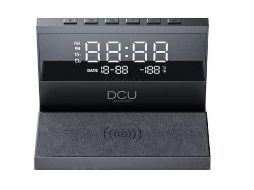 DCU TECNOLOGIC - Skrivbordsväckarklocka - trådlös snabbladdning - Justerbar nattlampa - 2 anpassningsbara larm