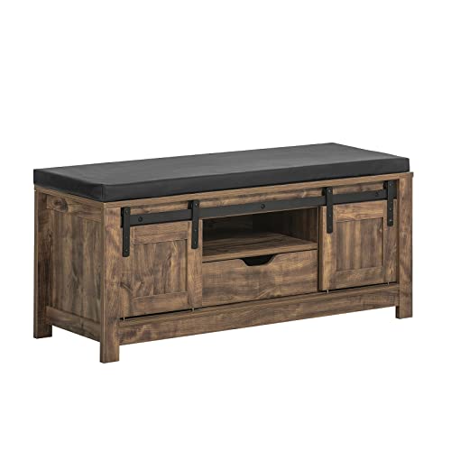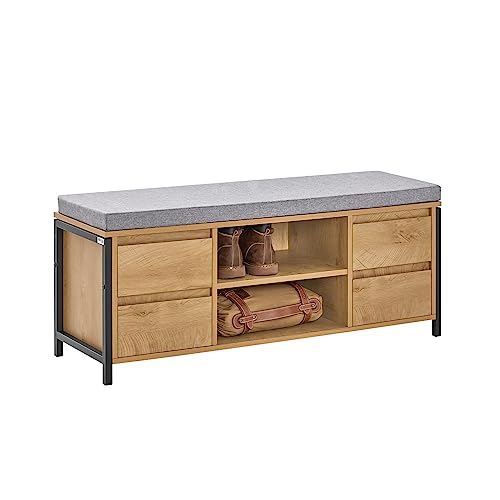 SoBuy Skobänk med 2 lådor och dyna, Förvaringsbox Testad för 120 kg, FSR47-N