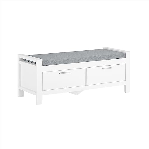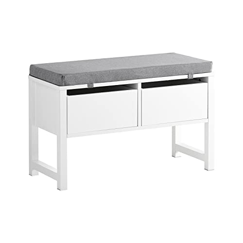 SoBuy Skobänk med 2 lådor och dyna, Förvaringsbox Testad för 120 kg, vit FSR74-W
