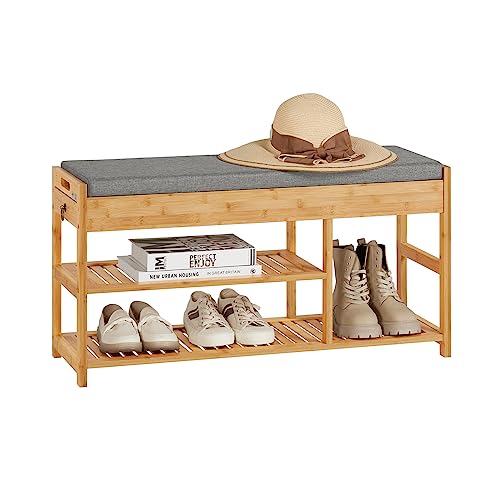 SoBuy FSR02-K-N skohylla, sittbänk, skobänk av högkvalitativ bambu med 2 års garanti, B50 cm