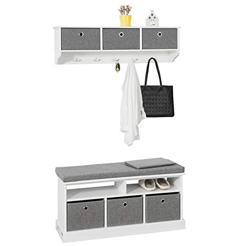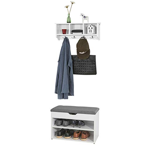 SoBuy Vägggarderobsset, hallset, hallmöbler, skobänk med sits, hallgarderob, vit och grå FSR67-HG+ FRG282-W