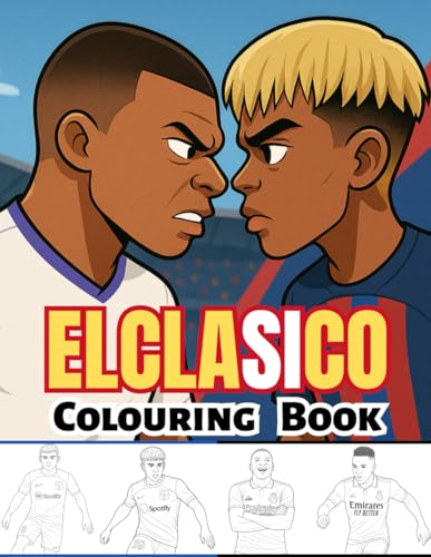 El Clasico football colouring Book: Color Barcelona and Madrid soccer stars, for kids and adults with Yamal, Mbappe, Vini and more