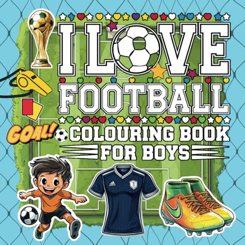 I Love Football Colouring Book For Boys: Easy to color Football items jersey, cleats, gloves, dribbling pose, and more | Soccer for kids age 4 and above