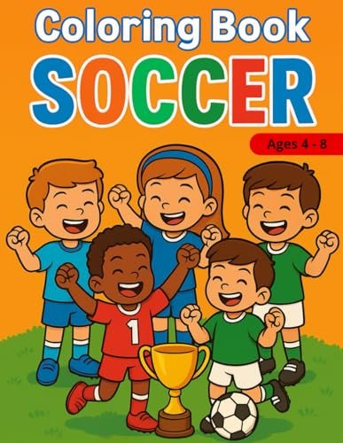 Soccer Coloring Book – 50 Fun Pages to Color: Soccer coloring book for kids ages 4 to 8 – Matches, trophies, action scenes and fun moments for young ... for holidays, birthdays, Christmas, and more.
