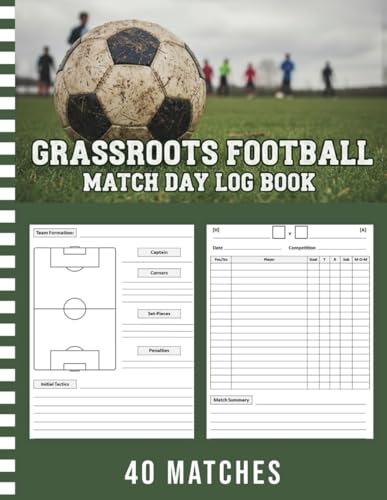 Grassroots Football Match Day log book: Soccer Coach Notebook to Track Lineups, Formations, Player Stats, Tactics, Game Notes, & More | Football Coaching Planner