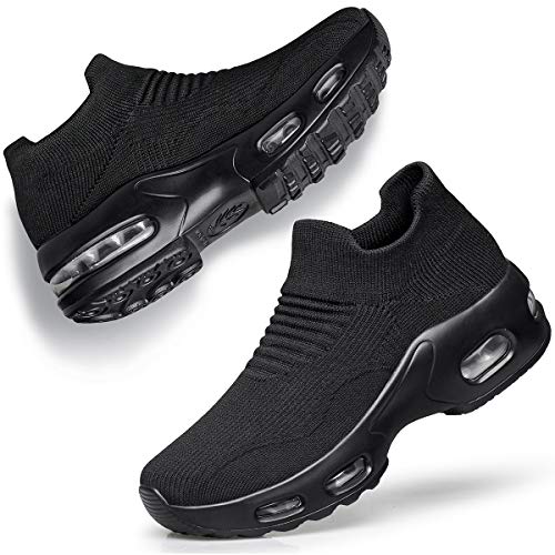 DOUSSPRT Dam promenadskor Slip on Sock Sneakers dam flickor sjuksköterska nät luftkudde plattform loafers mode vardag, Svart, 8 US