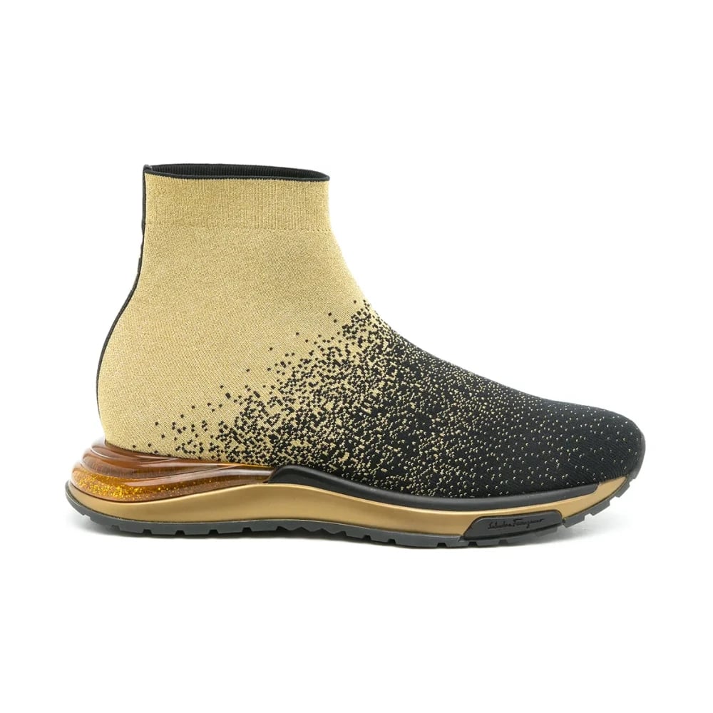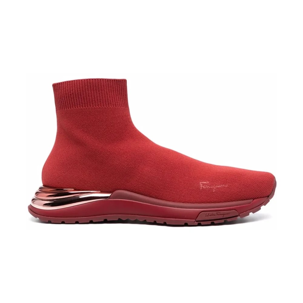 Ferragamo, Skor , Dam, 38 1/2 EU, Läder, Stickade Höga Sock Sneakers