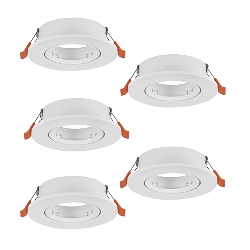 EGLO Barranco Infällda taklampor i set om 5, svängbara spotlights, rund infälld spot utan glödlampa, takspotlight av vit plast, GU10-sockel, 9 cm i diameter