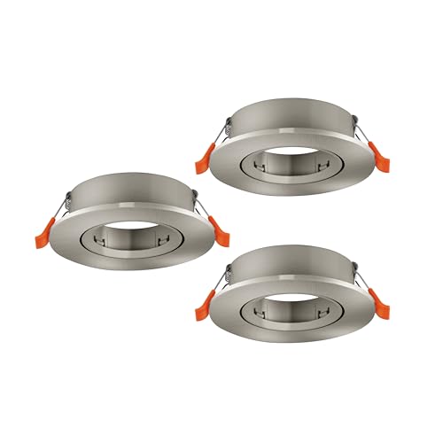 EGLO Barranco Infällda taklampor i set om 3, svängbara spotlights, rund infälld spot utan glödlampa, takspotlight av silverfärgad plast, GU10-sockel, 9 cm i diameter