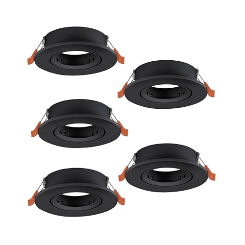 EGLO Barranco Infällda taklampor i set om 5, svängbara spotlights, rund infälld spot utan glödlampa, takspotlight av svart plast, GU10-sockel, 9 cm i diameter