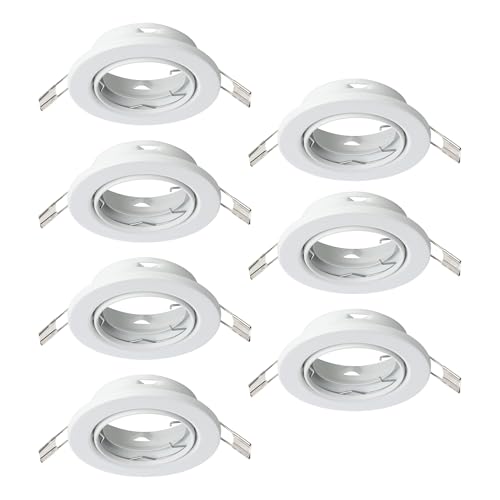EGLO 7-pack infällda spotlights Agulo, vridbar taklampa, rund infälld takspot utan ljuskälla, takspot i vit metall, GU10-sockel, Ø 8,6 cm