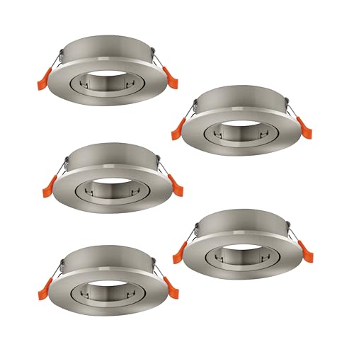EGLO Barranco Infällda taklampor i set om 5, svängbara spotlights, rund infälld spot utan glödlampa, takspotlight av silverfärgad plast, GU10-sockel, 9 cm i diameter