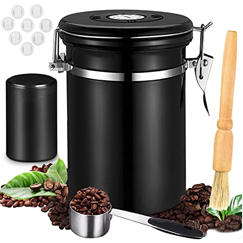 JOYBOY Kaffeburk lufttät 1800 ml, kaffebönor behållare förvaringsburkar i rostfritt stål med 60 ml minireseglas, datumtracker, 30 ml mätskopa och engångs-CO -ventil för kaffebönor, pulver, socker, te