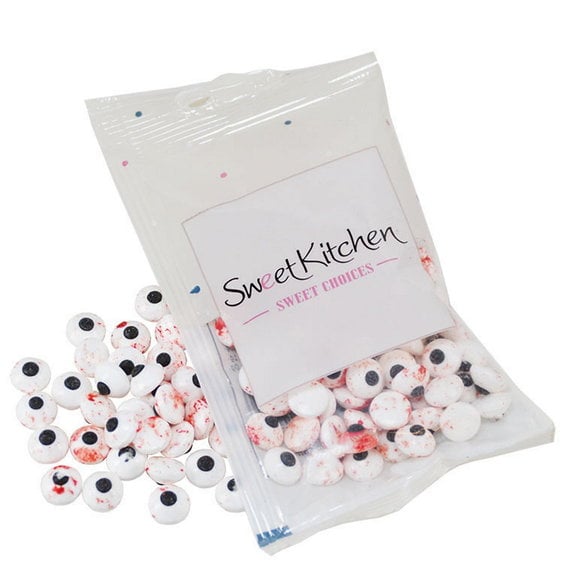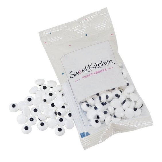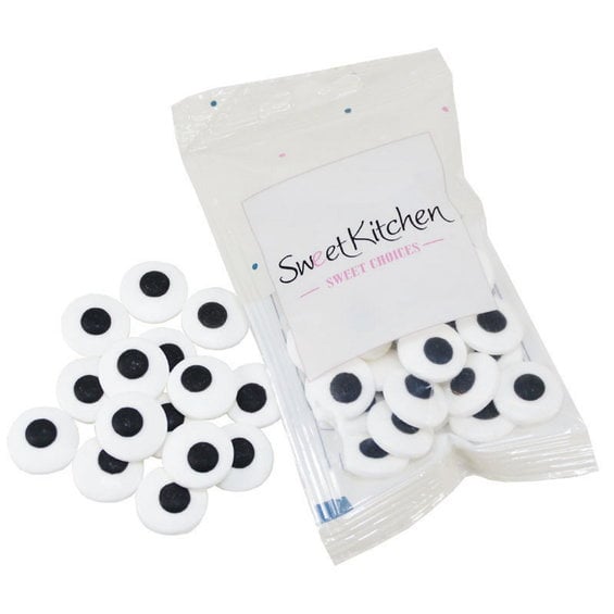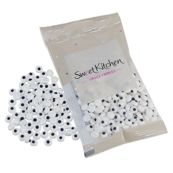 Blodsprängda sockerögon Ø10 mm, godisögon för att dekorera kakor, tårtor och muffins. 35 gram