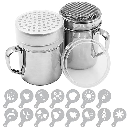 Pulveriserad sockerströare dammvippa med handtag, SENHAI 2 st pulverkar i rostfritt stål för sockerpeppar kanelpulvermjöl med tryckformar, schabloner – fint och stort nät