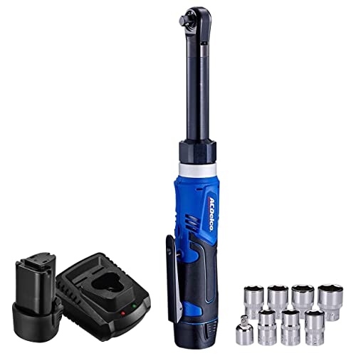 ACDelco ARW1209P G12 Lithium-Ion 12V (10.8V) Electric 3/8” Cordless Ratchet Wrench Set Power Tool Kit | Tool Set Includes Battery Pack, Charger & Socket Set