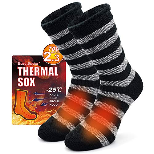 Busy Socks Winter Warm Thermal Socks for Men Women Extra Thick Insulated Heated Crew Boot Socks for Extreme Cold Weather, Large, 1 Pair Dark Grey Striped