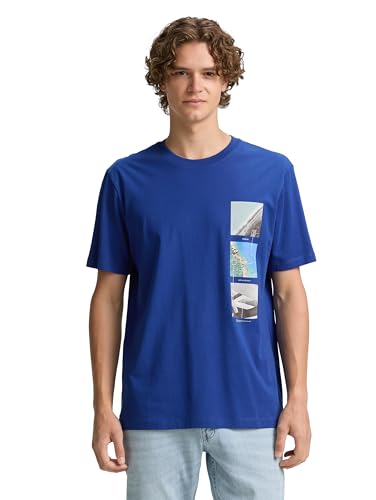 TOM TAILOR Denim herr avslappnad passform T-shirt med tryck, 10833 – sodalite blå, XL