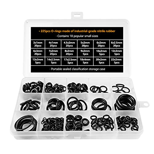 Gvolatee 225 st. tätningsringar, set i svart, 18 storlekar, O-ringsortiment av gummibrickor, O-ring, tätningsset, O-ringar, tätningar av NBR för sanitär, syfon, sodastream och cistern