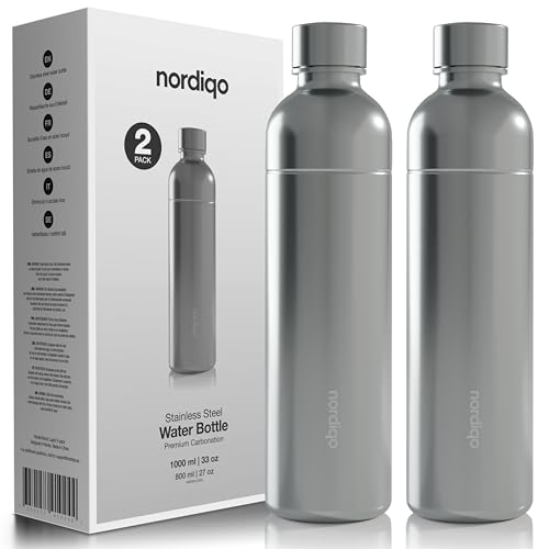 Nordiqo Premium 1L flaska i rostfritt stål | Kompatibel med Aarke Carbonator 3, Sodastream (Exkl. modellerna Crystal + Jet) och många andra | Tål Maskindisk, Inget Utgångsdatum | LFGB-Certifierad