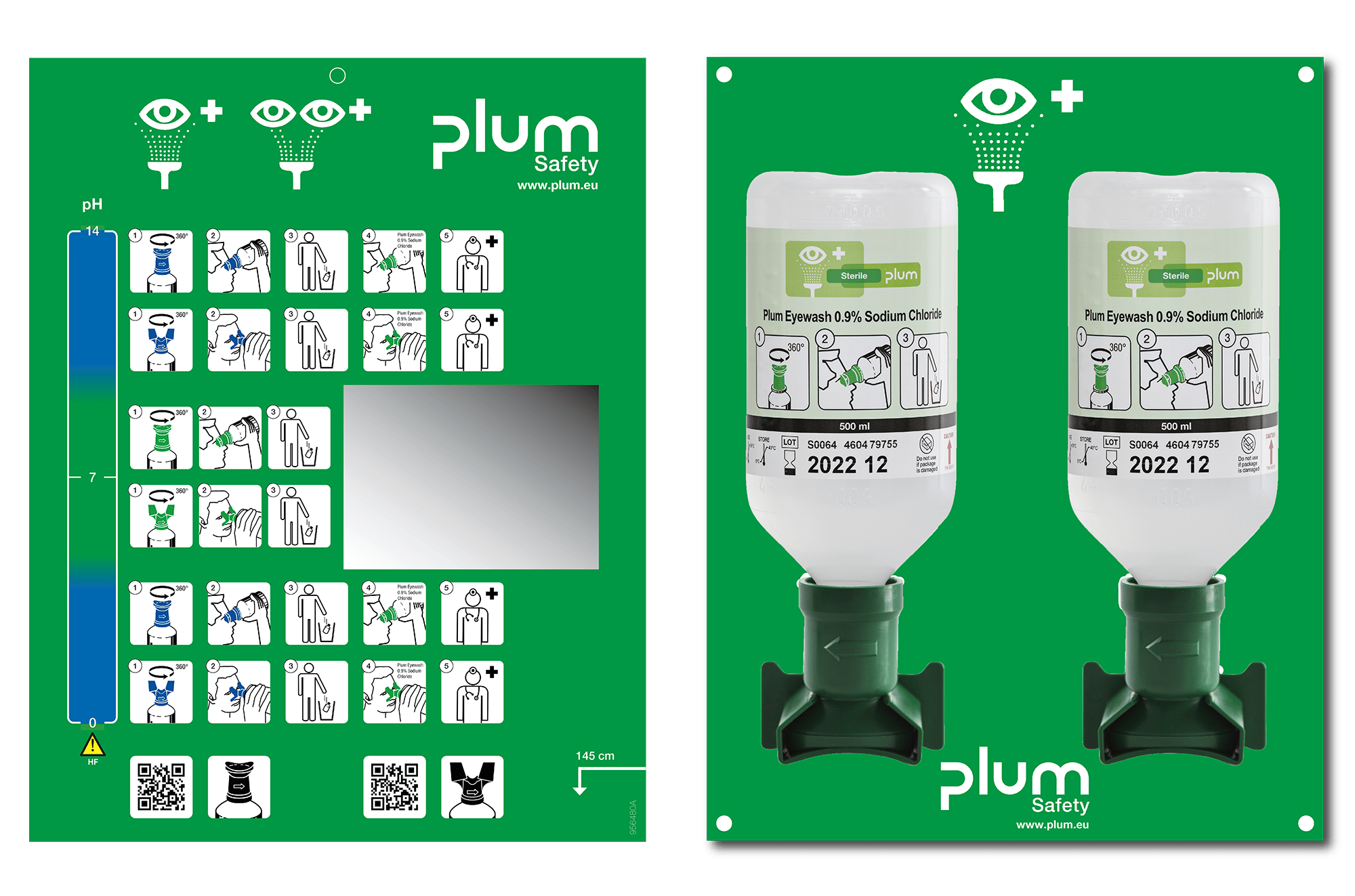 Ãgonsköljningsstation Plum, med 2 x 0,5 L flaskor