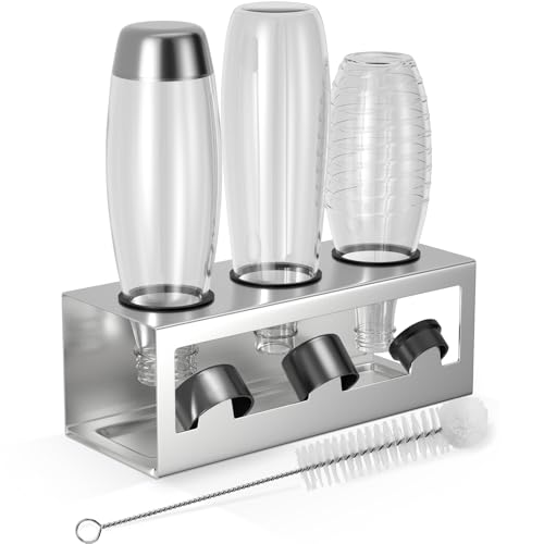 HOMMAND Flaskhållare För SodaStream Flaskor, 3-håls Silver, Pulverlackerat Stål, Dränering, Droppställ, Inklusive Silikonskyddsringar, Avtappningskärl Och Lockhållare