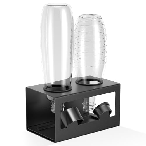 HOMMAND Flaskhållare för SodaStream Crystal och Emil-flaskor, flaskhållare i rostfritt stål, droppställ för 2 flaskor, med silikonskyddsringar, droppbricka och lockhållare svart