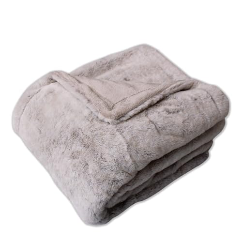 DREAMLANDING Lyxig filt i kaninfuskpäls, vändbar, fluffig, varm, mysig och mjuk för säng, soffa, heminredning (grå, 130 x 150 cm)
