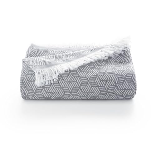 GAMUSI Multifunktionellt överkast säng 135/150 cm och soffa. Pläd Foulard sängöverdrag 3-sits mjuk geometrisk bomull - 230 x 280 cm, ljusgrå