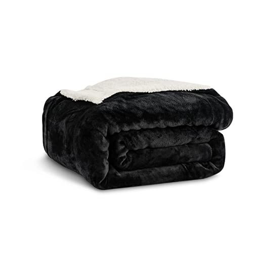 ComfyWell Sherpa fleecefilt, mjuk och mysig – överkast, stor fluffig filt för soffa, säng, resor, tjock termisk varm sängfilt 130 x 150 cm. (Resa/enkel, svart)