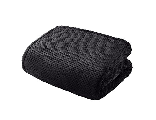 Sleepdown Lyxig våffelfleece svart överkast över soffa supermjuk varm mysig vaxkaka sängfilt överkast – 150 cm x 200 cm, 5056242854456