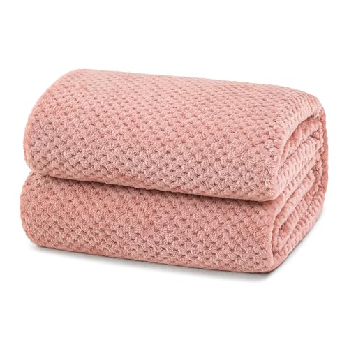 Yebeda Gosig filt, supermjuk och varm fleecefilt för soffa, soffa och säng med våffelmönster, mysig behaglig filt, filt för soffa, 150 x 200 cm, rosa