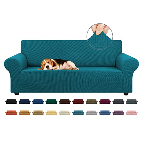 KEKUOU Stretch sofföverdrag, sofföverdrag för 3 kuddar soffa (200 – 238 cm) möbelskydd 3-sits soffa med elastisk botten för barn, hund, Jacquard liten rutig (stor, påfågelblå)