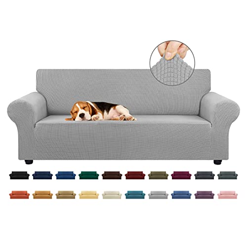 KEKUOU Stretch sofföverdrag, sofföverdrag för 3 kuddar soffa (200 – 238 cm) möbelskydd 3-sits soffa med elastisk botten för barn, hund, Jacquard liten rutig (stor, silver)