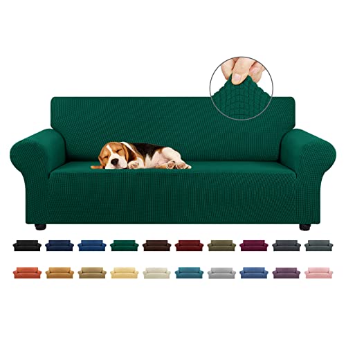 KEKUOU Stretch sofföverdrag, sofföverdrag för 3 kuddar soffa (200 – 238 cm) möbelskydd 3-sits soffa med elastisk botten för barn, hund, Jacquard liten rutig (stor, jägare)