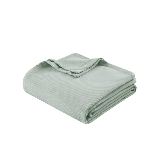 Madison Park Liquid Cotton Bomullsfilt, mjuk och mysig, 100% ringspunnen bomull, för säng och soffa, full/queen size, ljusgrön (Sea Foam)