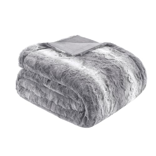 Madison Park Zuri Mjuk plysch lyx överdimensionerad fuskpäls överkast djur ränder design, falskt mink på baksidan, modern kallt väder filt för säng, soffa soffa, 152 x 178 cm, grå