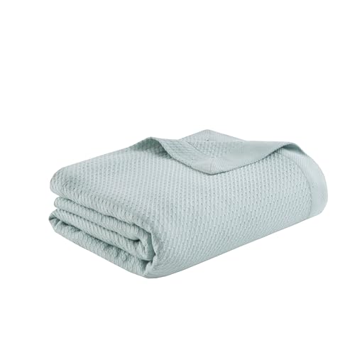 Madison Park 100% egyptisk bomull lätt sommarfilt, andningsbar våffelstickad design, mjukt mysigt överkast för hela säsongen för säng, soffa eller soffa, blågrön hel/drottning storlek (230 x 228 cm)