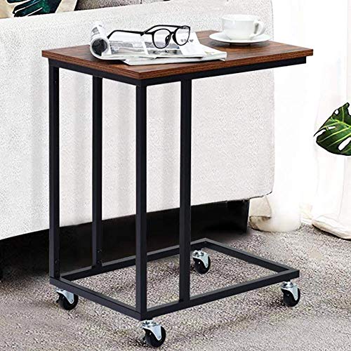 BAKAJI Soffbord Kaffehållare PC Bord Vardagsrum Sida Soffa Trähylla Metallram Modern Design Industriell med hjul 50 x 35 x 60 cm