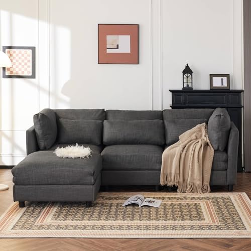 ZYLOYAL10 Soffa med sovfunktion, modern design, stoppad möbel, soffa, 3-sitsig soffa, vardagsrumssoffa, soffa med schäslong, hörnsoffa med fotstöd (grå)
