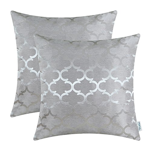 CaliTime Kuddöverdrag paket med 2 prydnadskuddfodral skal för hem soffa soffa modern lysande och matt kontrast fyrklöver accent geometrisk 40 cm x 40 cm silvergrå